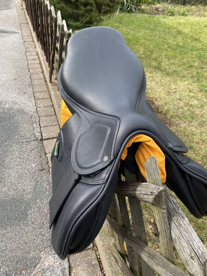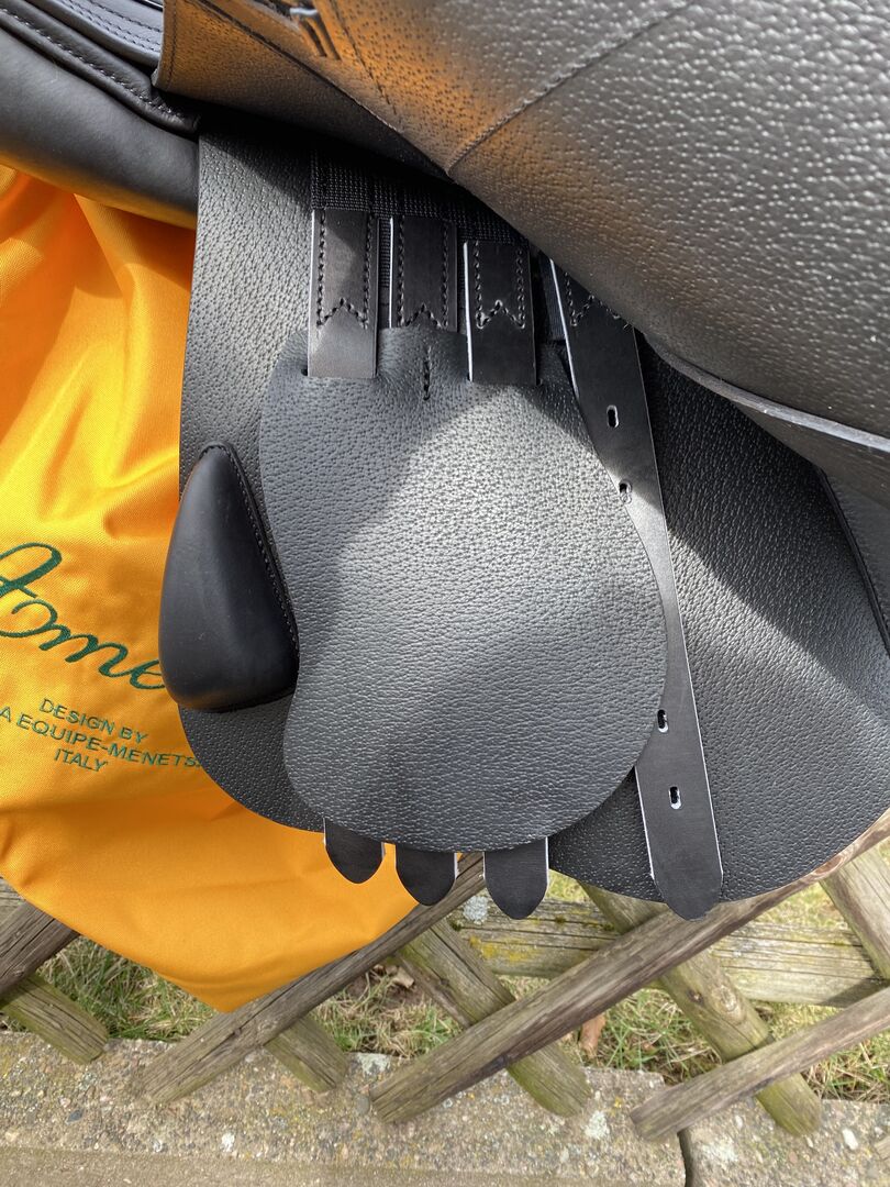 Amerigo DJ wide - Sell my new unused saddle Original price was 5200€ Pair of info about the saddle: special gullet design very soft leather french wool panels saddle protection in the area of the riding boot The jumping saddle DJ Largo Pinerolo from Amerigo is perfect for the ambitious rider. A high level of seating comfort is guaranteed by the particularly soft and supple leather. The special shape of the gullet plate provides more freedom of shoulder and movement. With doubled saddle flap, wood-steel spring tree, French wool pad, Close Contact seat and professional saddle protection in the friction area of the riding boot.