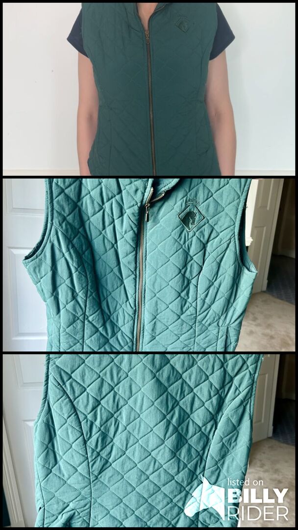 Arista Quilted Riding Vest Size Small Forest Green Used and in very good condition Great for training, warming up at shoes Has fitted shape that nips in at the waist