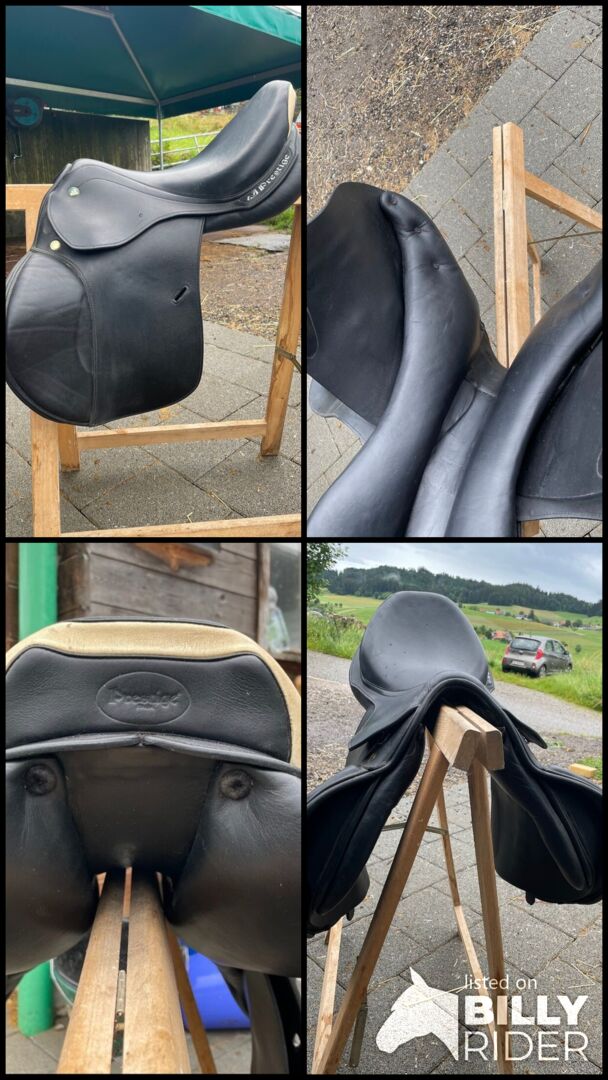 beautiful black prestige jumping saddle - beautiful black prestige jumping saddle Reason for sale: it no longer fits Unfortunately there are a few raindrops on the photos but they are not on the saddle
