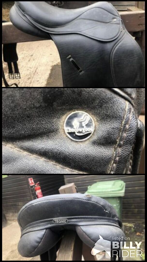 Teqnic saddle. Has been used but has plenty of life left in it, small tear near back and front. But still in good condition and durable leather.