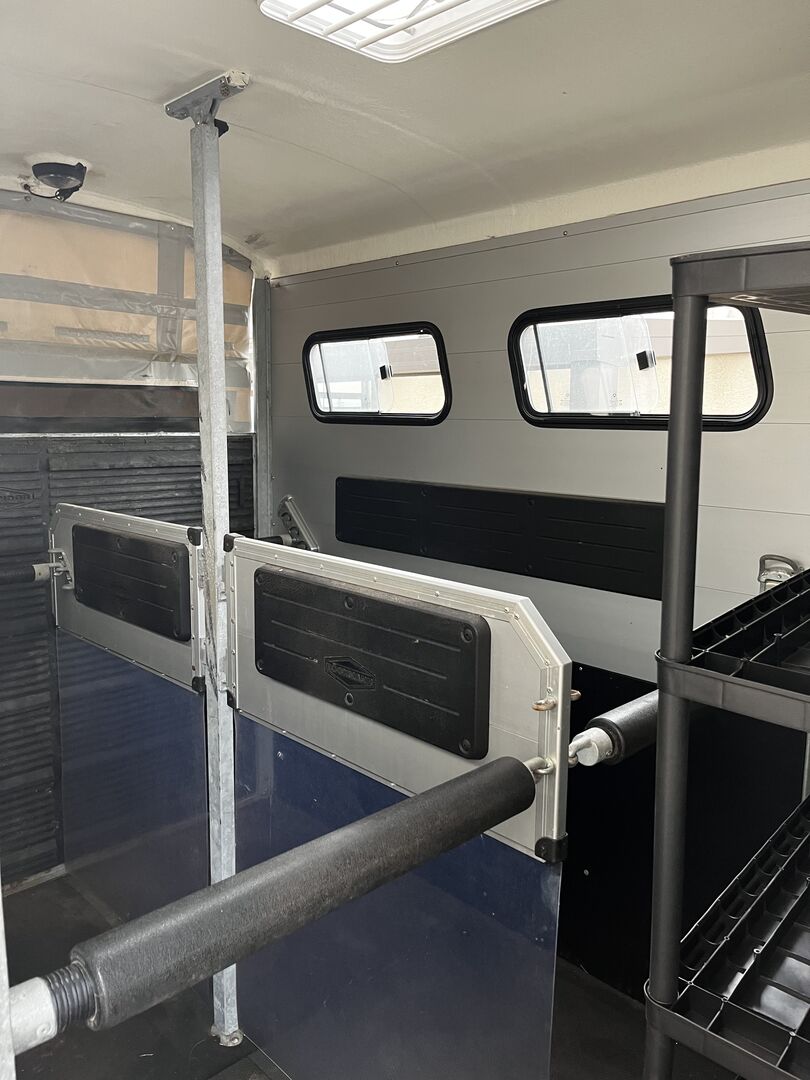 - HU: NEW until 06/2025 - first registration: 05/2017 - perm. total weight: 2700 kg - little used - video surveillance incl rear view camera - Roof ventilator in the polyester hood - Lowered WCF chassis - Original Böckmann full aluminum floor - walk-in saddle room with various extras (folding seat, saddle holder, shelf etc.) // more hooks etc. added - door in partition wall - side kick guard - breast bar padding - side padding - Multi Safe System (safety stall bar system) - Center post partition (pivoting back and front) with padding - Rear flap / 1-wing door combination - Automatic support wheel - Tarpaulin lift with integrated net - no VAT to be shown