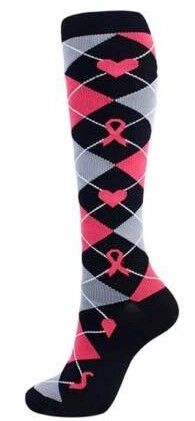 Breast Cancer awareness long compression riding socks, lovely soft stretchy material