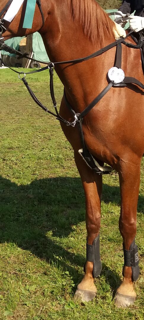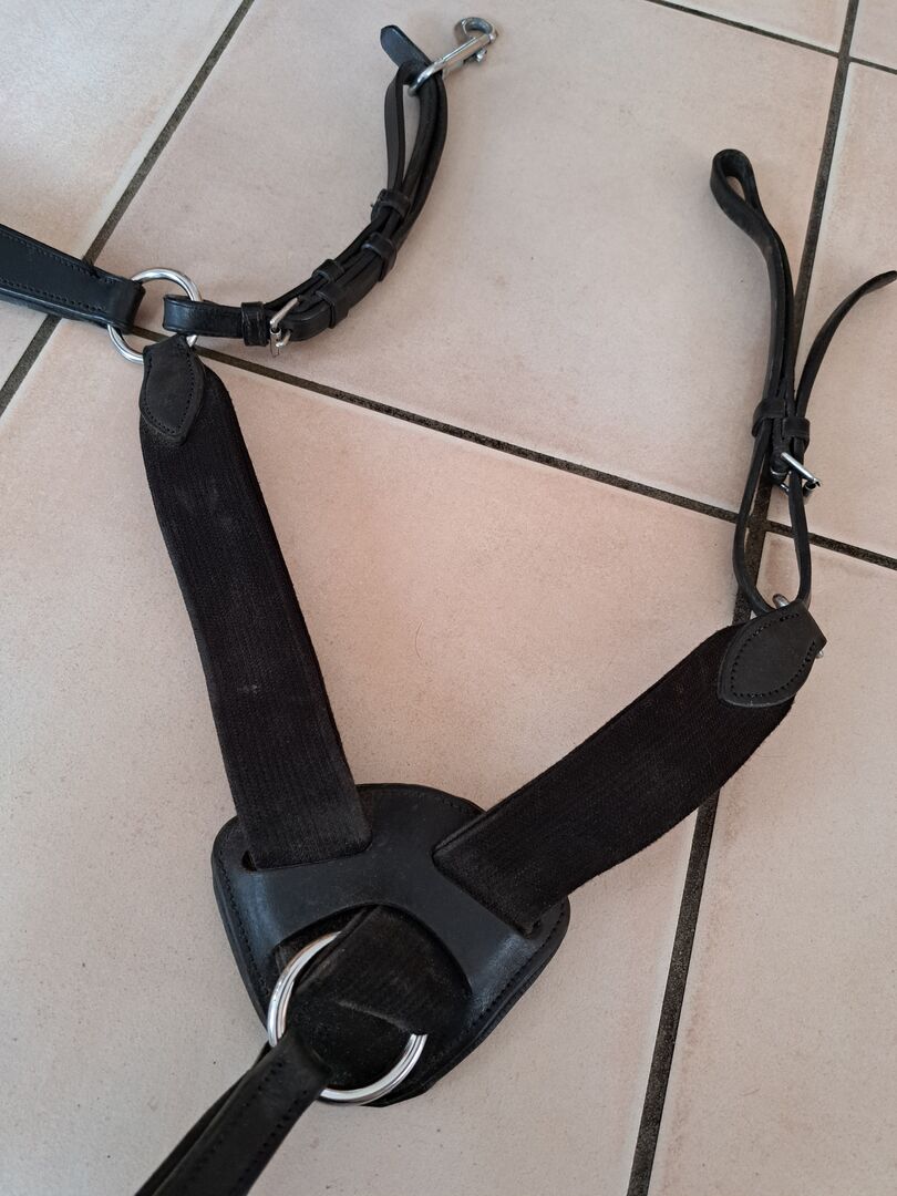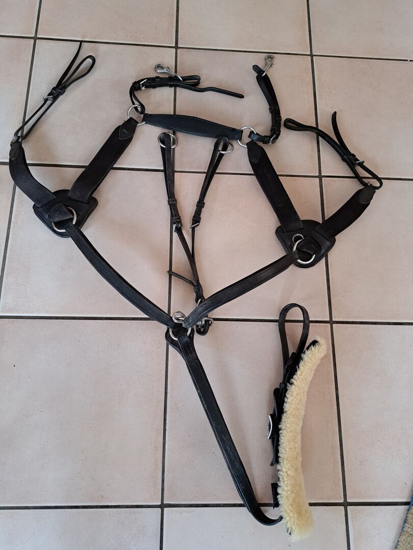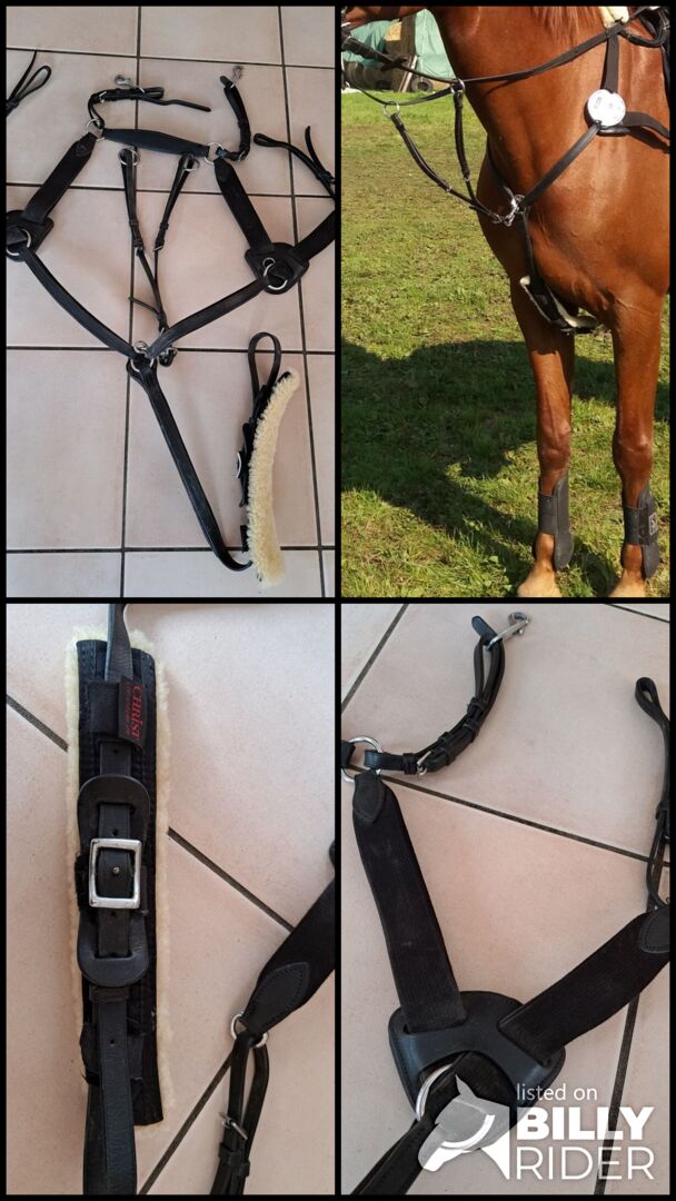 Breastplate with Martingale - I am offering a 5-point breastplate with detachable martingale for sale. The elastic band provides extra freedom of movement and shock absorption. The lambskin is removable. Shipping possible for an extra charge.