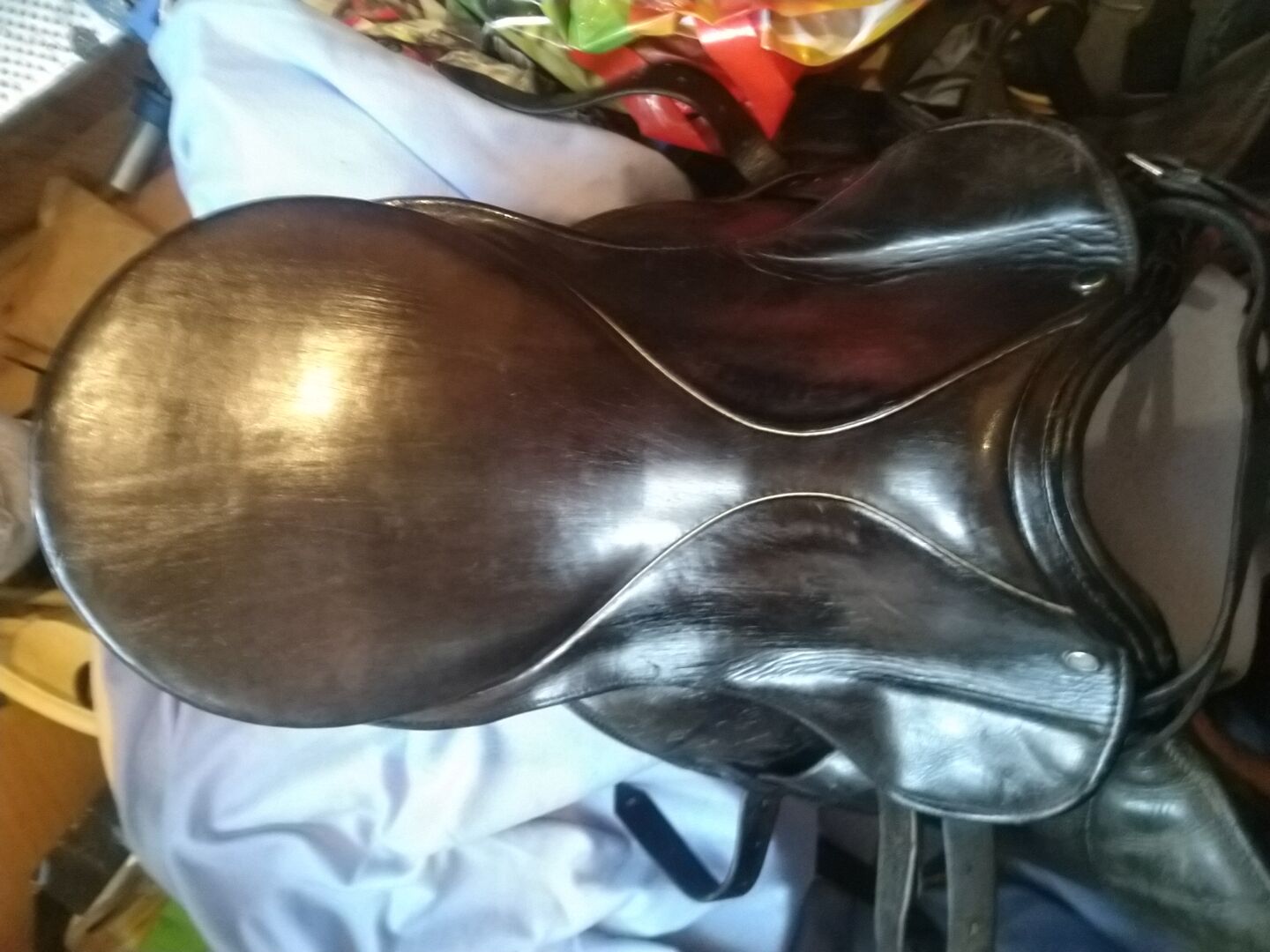 Dressage saddle and accessories - The saddle (for thoroughbred) has signs of wear but is in good condition. The accessories are also in good condition.