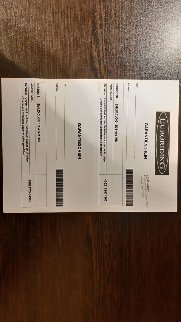 Dressage saddle Euroriding/Prestige Emilio - I offer here a dressage saddle for sale by Euroriding in cooperation with Prestige. It is now almost one year old, used 1-2 times a week, but always kept dry and well maintained. Has hardly any signs of use. The seat size is indicated as 16 inches, but more like 17.5. Me and my daughter fit into the saddle with clothes size 38/40. The stamped chamber width is 34, but was widened to 35. A saddle pass with a guarantee on the leather with a remaining guarantee of one year and unlimited guarantee on the saddle tree is included.