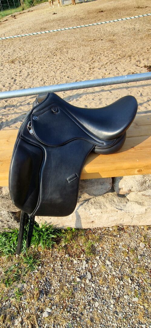 Dressage saddle from Deuber - Selling my saddle because unfortunately it does not suit me, I bought it in Nov. 22 and have used it for about 6 months, since then it has been stored dry in the house. It is also suitable for very short horses. It was on a very short Icelandic horse. The chamber is adjustable with a key, large Velcro pads are included. Warranty and saddle pass available. Price is VB.