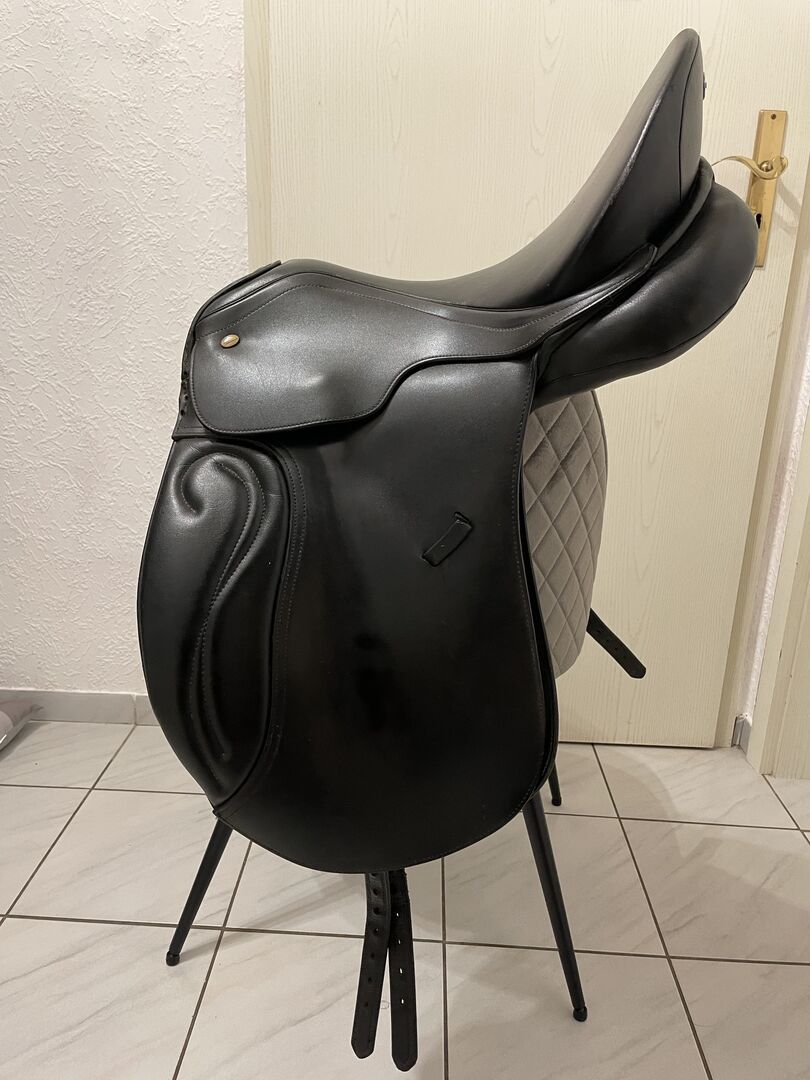 Dressage saddle, Horse and Passion by Kiefer, KW 37, French panels - I am offering my dressage saddle from horse and passion as it no longer fits my mare. It has been altered to KW 37, but can be individually adjusted by any saddler. I can't say how old it is, I bought it second-hand myself. One flap for the stirrup leathers is torn, but this can easily be repaired, otherwise it is in good condition.