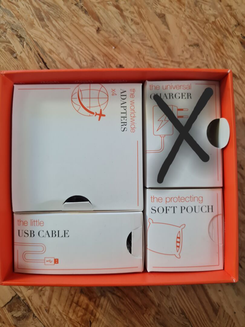 The universal charger is unfortunately missing, as can be seen in the pictures, but the rest is complete. Also included is the holder for the sensor, 2 leather buckles and 2 leather extensions.