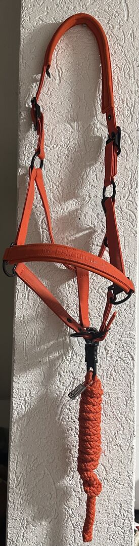 Eskadron holster WB - I am offering several Eskadron halters here. All with rope and in size WB. One is in the size Pony and in the color orange but this is also available in WB. The Lilianen halter comes with gaiters in size L. And the orange halter with stones at the front unfortunately has no rope. Some halters are used but some are brand new.