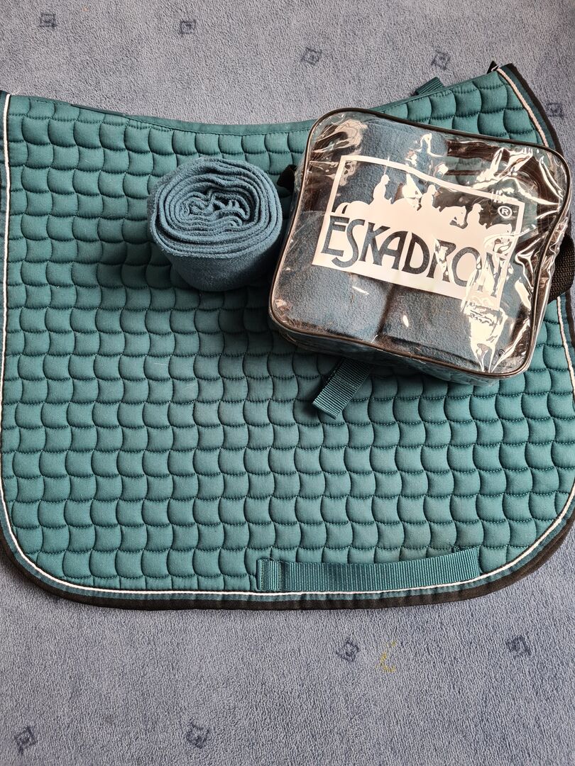 Eskadron set in teal blue size pony - Sell a used Eskadron set in teal blue. Good condition. Price: 40€ Bandages: size pony Saddle pad: size pony dressage Shipping possible if shipping costs are paid Payment by bank transfer No exchange Private sale, no guarantee, no return! With questions and interest gladly write