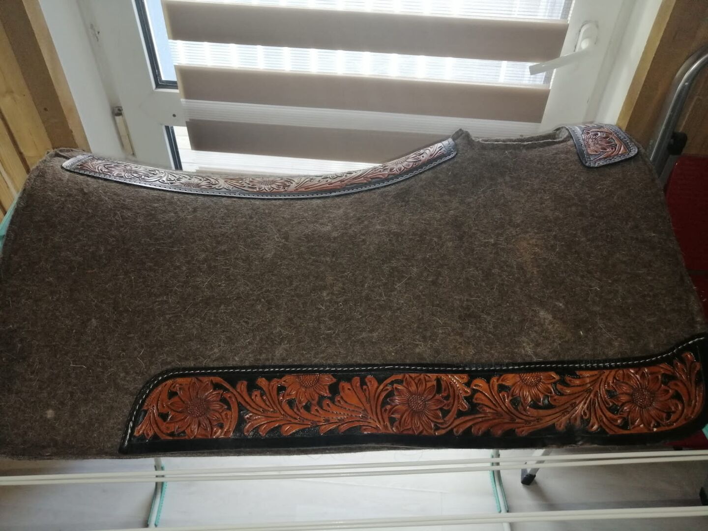 Felt pad, Westernpad from LP Trick, absolutely as new - High quality wool felt western pad with detailed hallmarking. With a thickness of 3.1 cm and a soft surface, it is cuddly to the horse's back and thus provides a good cushion between the horse's back and the saddle with rider weight. Unlike thinner pads, this one retains very good cushioning even after intensive use.