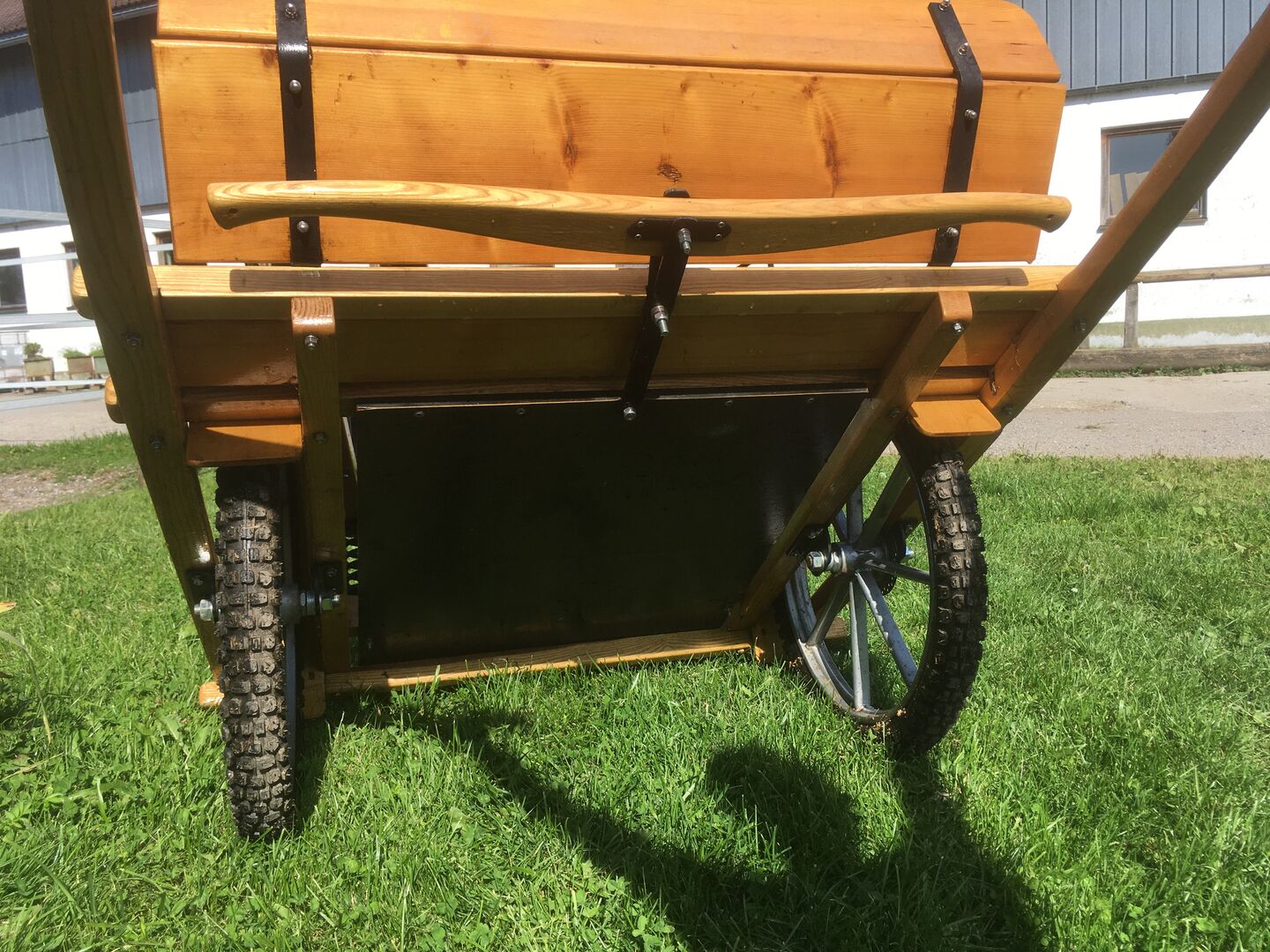 Gig / sulky made of ash wood - ZIP CODE 83236 For sale is a classic gig made of ash wood. Unfortunately it was no longer used by me as my horse (stm 152m) passed away. The beautiful ash wood is in perfect condition and has been completely sanded and varnished with several layers of boat varnish, all lock screws/bolts etc. have been renewed. The wheels are as good as new (unused), prepared for disc brakes, a brake system has not (yet) been installed. A protective tarpaulin (truck tarpaulin) is included. VB: make me a realistic offer around 500.-€, (it will not be given away and a delivery service in the area can be discussed)