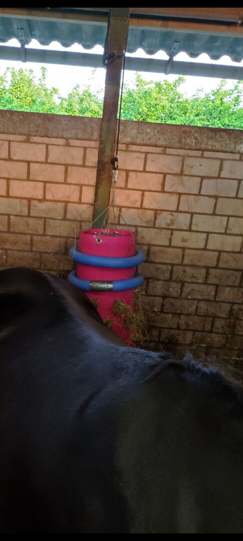 Hay Toy used - - 3x used hay Toy for sale - hung only in the box - with foam noodles round (Was opened at old horse in the box , for noise damping wg. the bars) - original price was 129.90 plus shipping