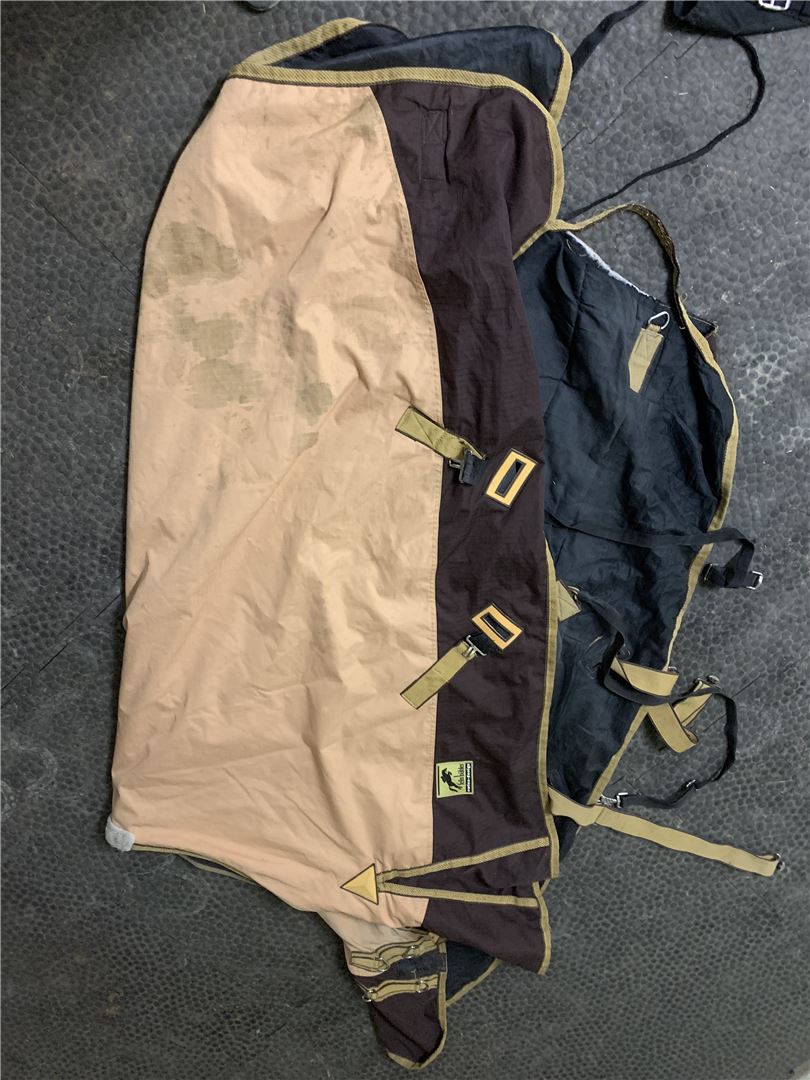 horse blanket - For sale, yellow-brown horse blanket. Slight defect in the back (see photo) otherwise good condition. Belly straps and leg straps. 135 cm