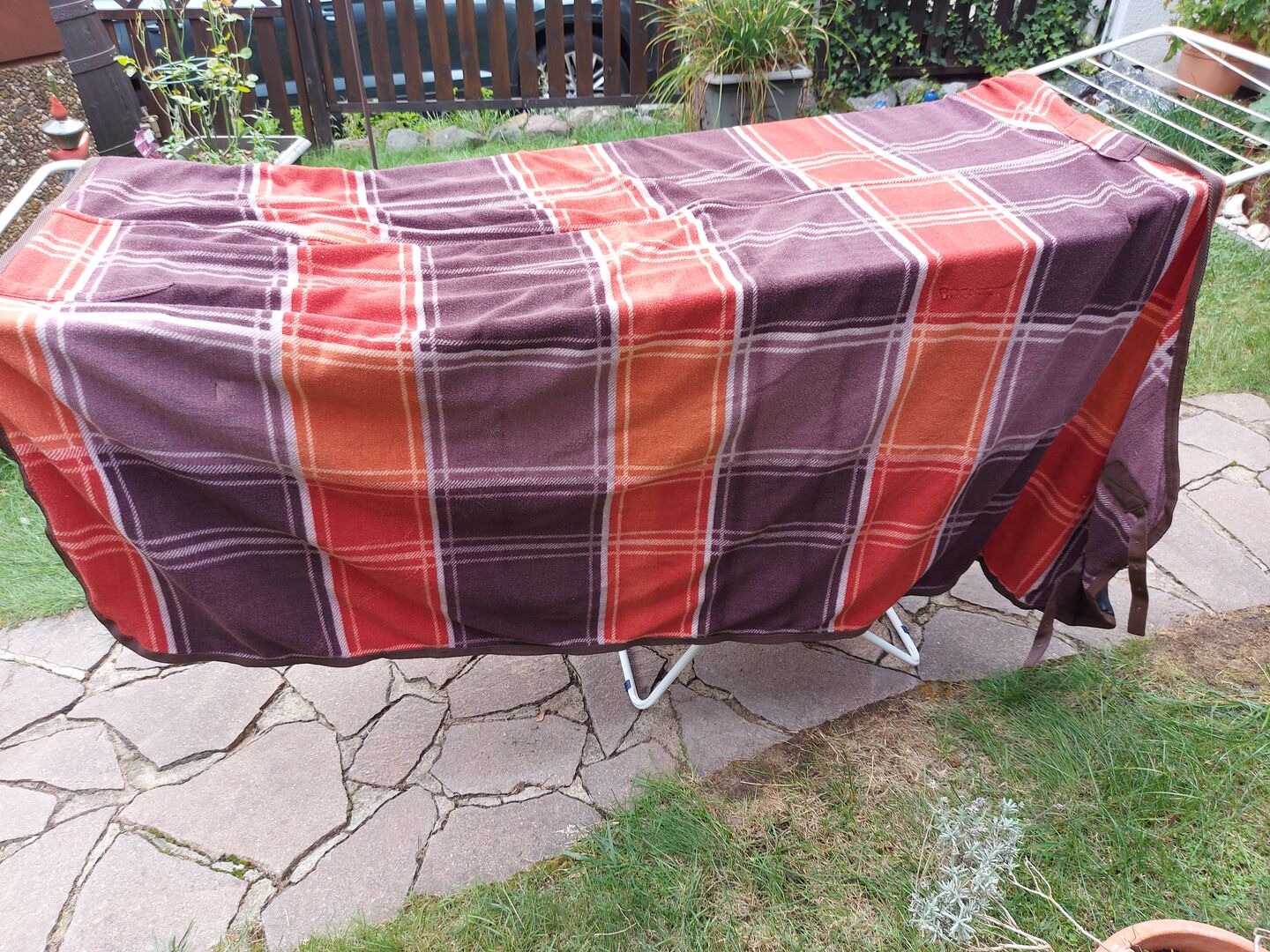 Horse Friends 135 cm sweat rug - I am selling my sweat rug because I have given up riding. It is red-brown plaid. Unfortunately my horse got it between his teeth and I had to patch it 3 times. The tears are hardly visible from the outside. Private sale, therefore no guarantee, warranty or return.