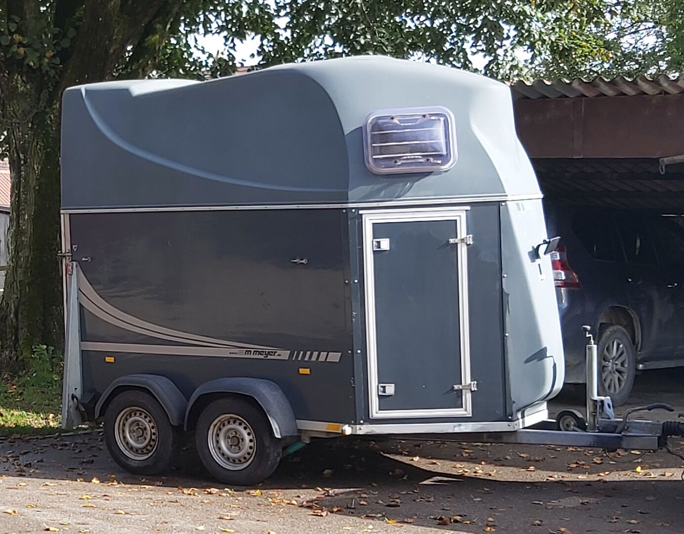 horse trailers - for sale due to non-use: 2-seater horse trailer Meyer in very good condition. Trailer has wooden floor and tack room. Vintage 2008. test date motor vehicle inspection October 2024.