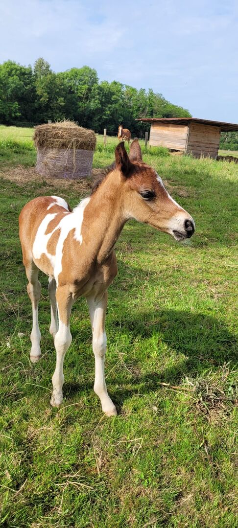 Der Jährling befindet sich aktuell mit unseren anderen Jungpferden in Frankreich. Er ist verladefromm, und ist sehr brav beim Hufschmied.