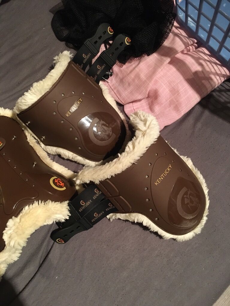 Kentucky lambskin gaiters + crutch caps brown L - Little used Kentucky lambskin gaiters and string caps in brown size L Free shipping Price VHB Still being washed