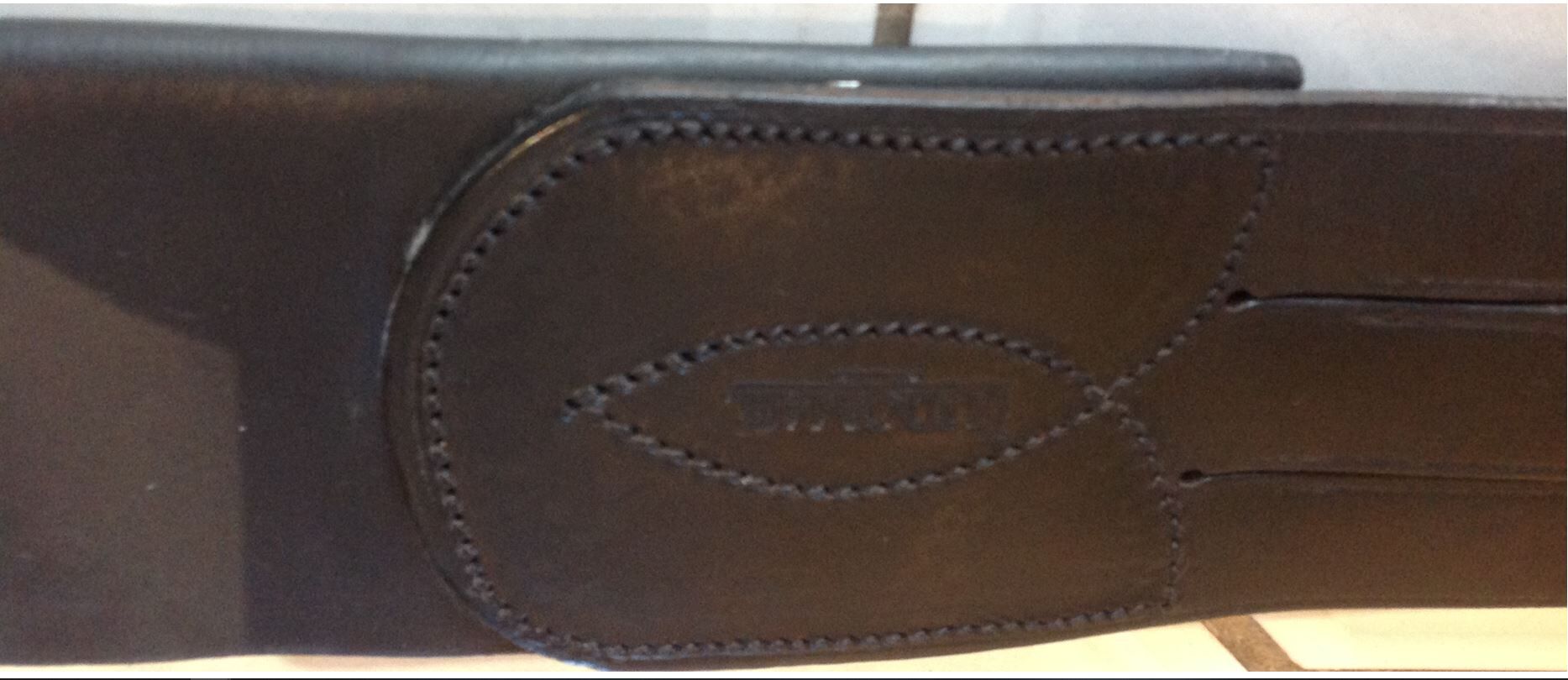 Ludomar saddle girth leather - For sale a used leather saddle girth from the traditional Ludomar workshop. Length 135 cm. The girth has three girth buckles, in my case the girth was attached to an original Ludomar Portugesa saddle, which traditionally has 3 girth straps. This girth is characterized by very beautiful glove-soft leather, triple-folded and reinforced on the inside with a strap The girth is in a used, well-kept condition.
