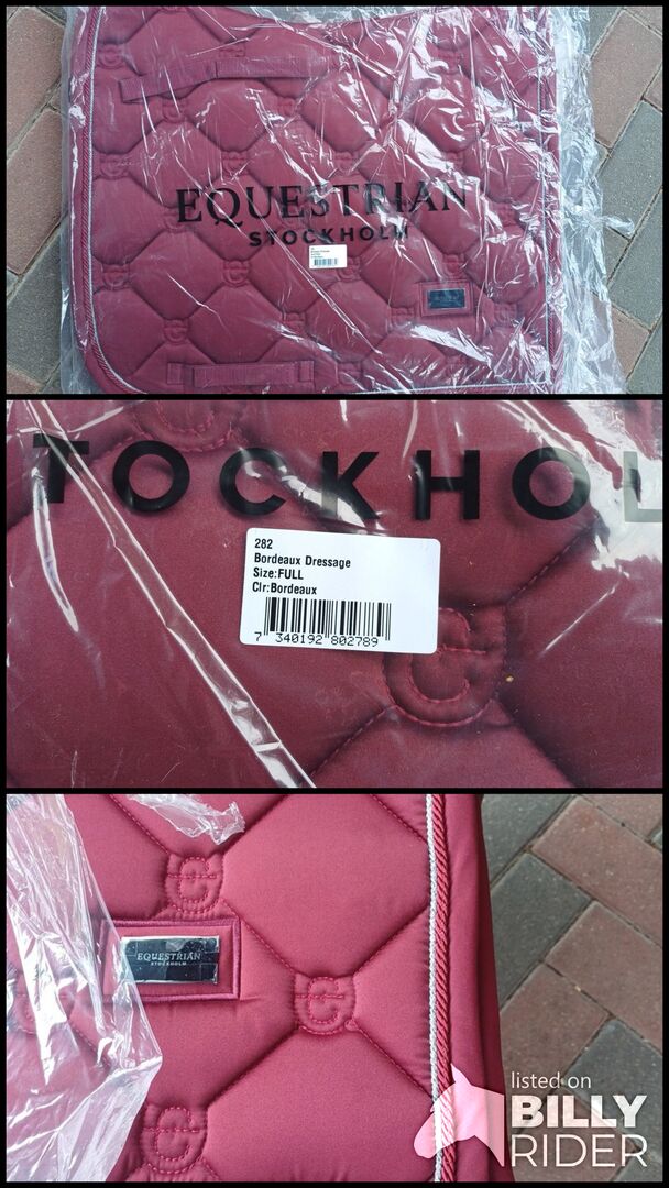Here I am selling this great brand new saddle pad from Equestrian Stockholm in Bordeaux with silver piping size Full.