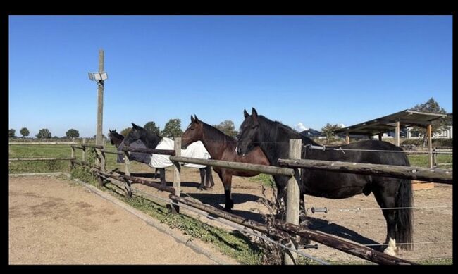 The horses can move freely here and have constant access to fresh hay. The riding area offers varied routes for relaxed rides. The full board includes 24/7 hay, meadows, water, electricity, 1x daily mucking out by us.