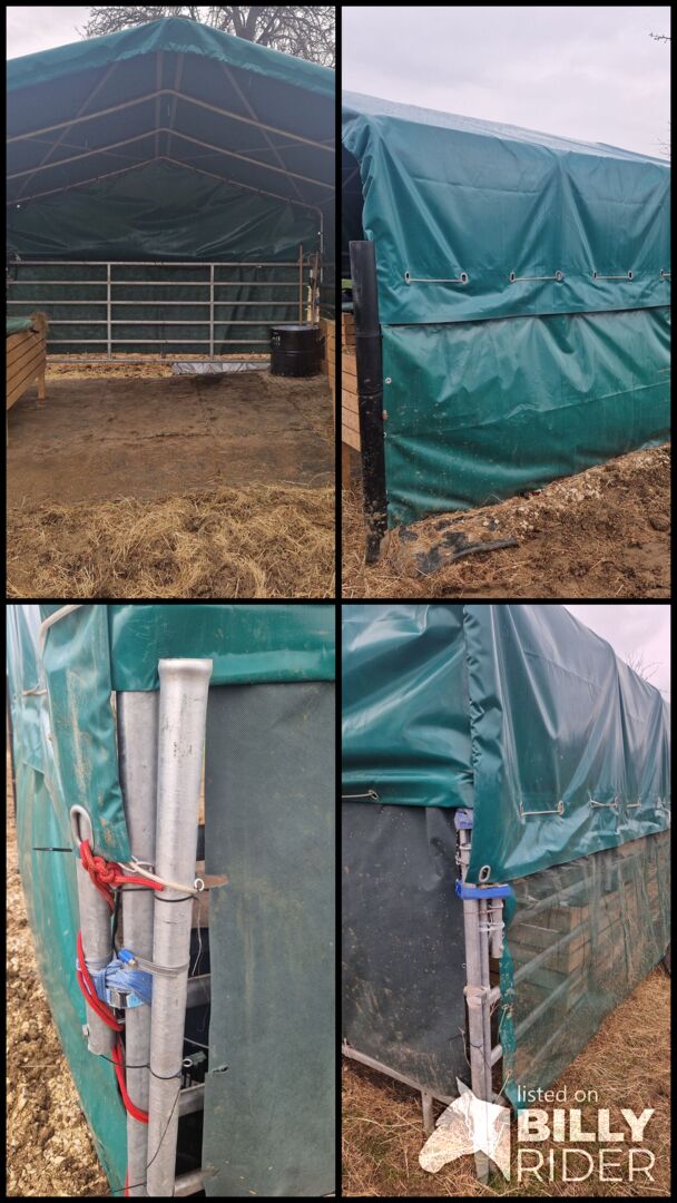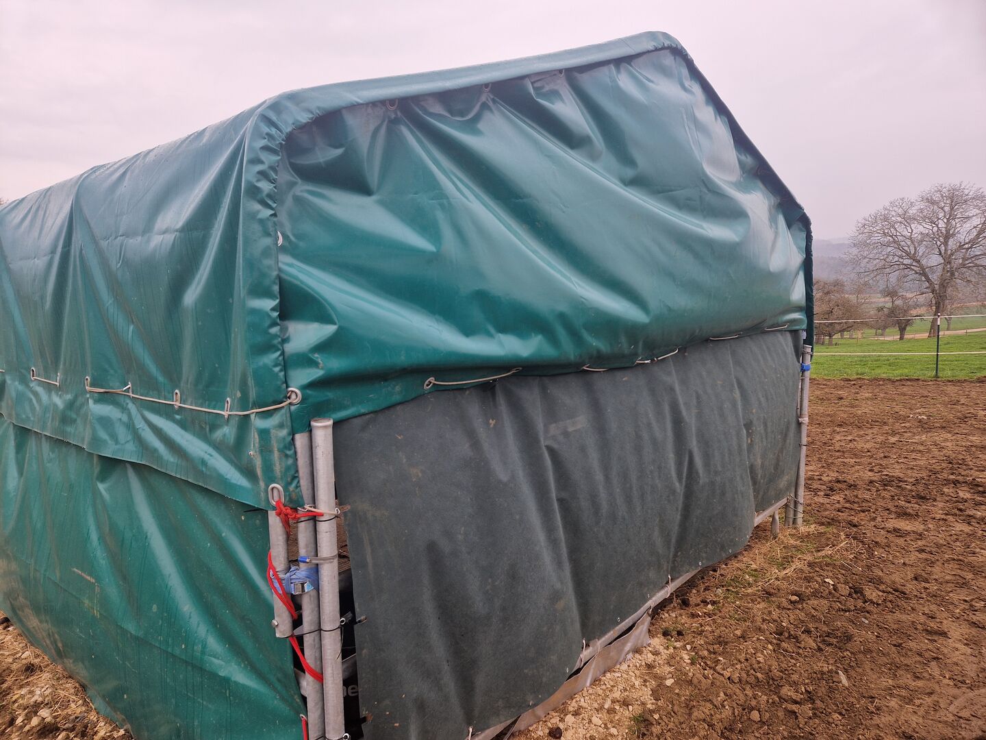 Pasture tent 3,6mx,4m - For sale a pasture tent 3,60mx4m. Tarpaulin and windbreak nets without defects or holes. Incl. panels 3 pieces. The tent is no longer needed.