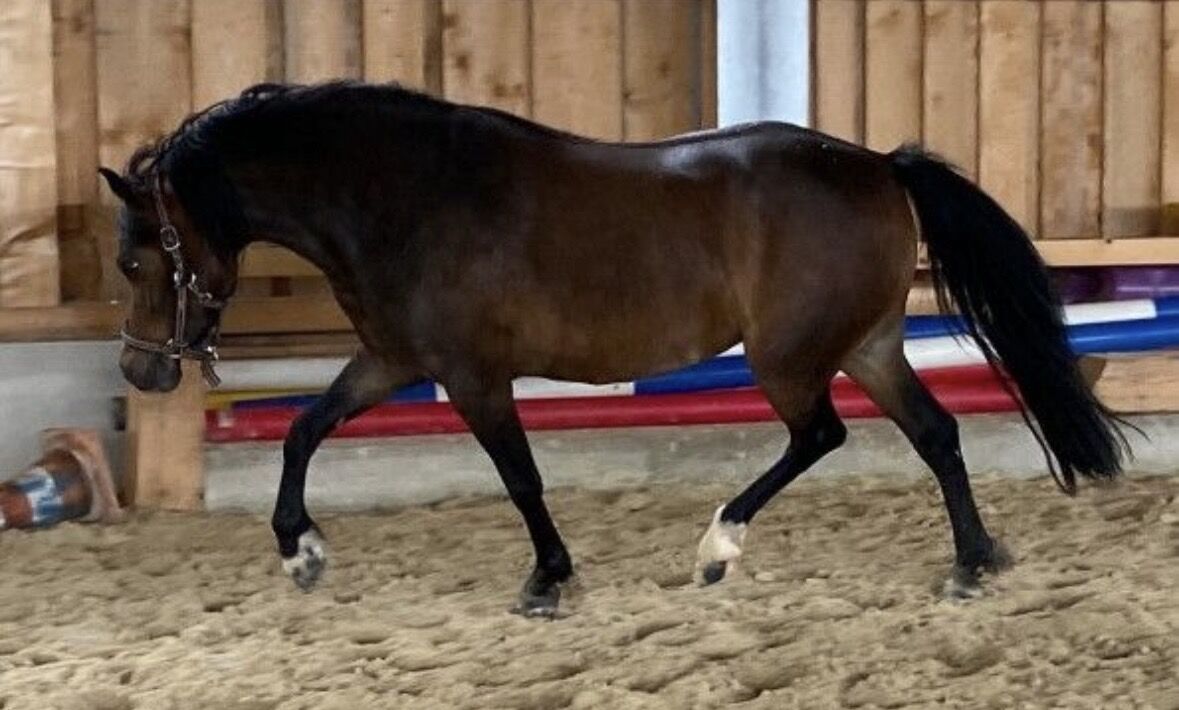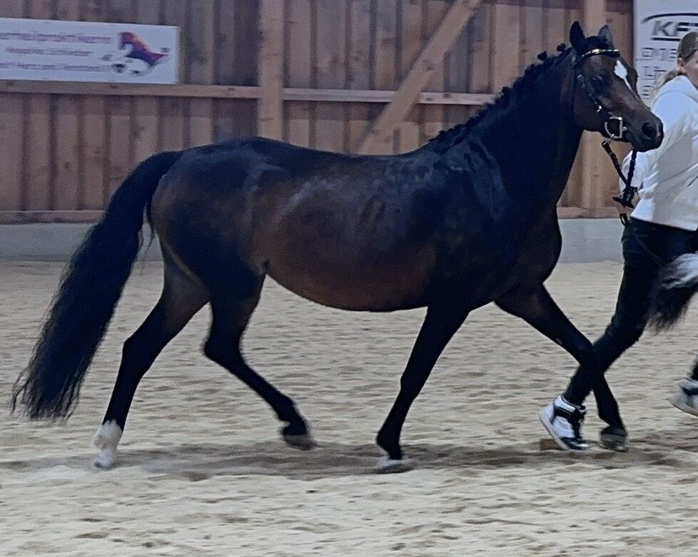Had a filly last year (premium), therefore not trained. Very easy birth, great mom. Has been broken in, walks nicely on the lunge, well-behaved in ground work and handling. Very intelligent, sporty, tender girl. She will not be sold to riding schools, she needs her human/family. No dealers! She has had 2 buck hooves at the front since birth and these have not been passed on.