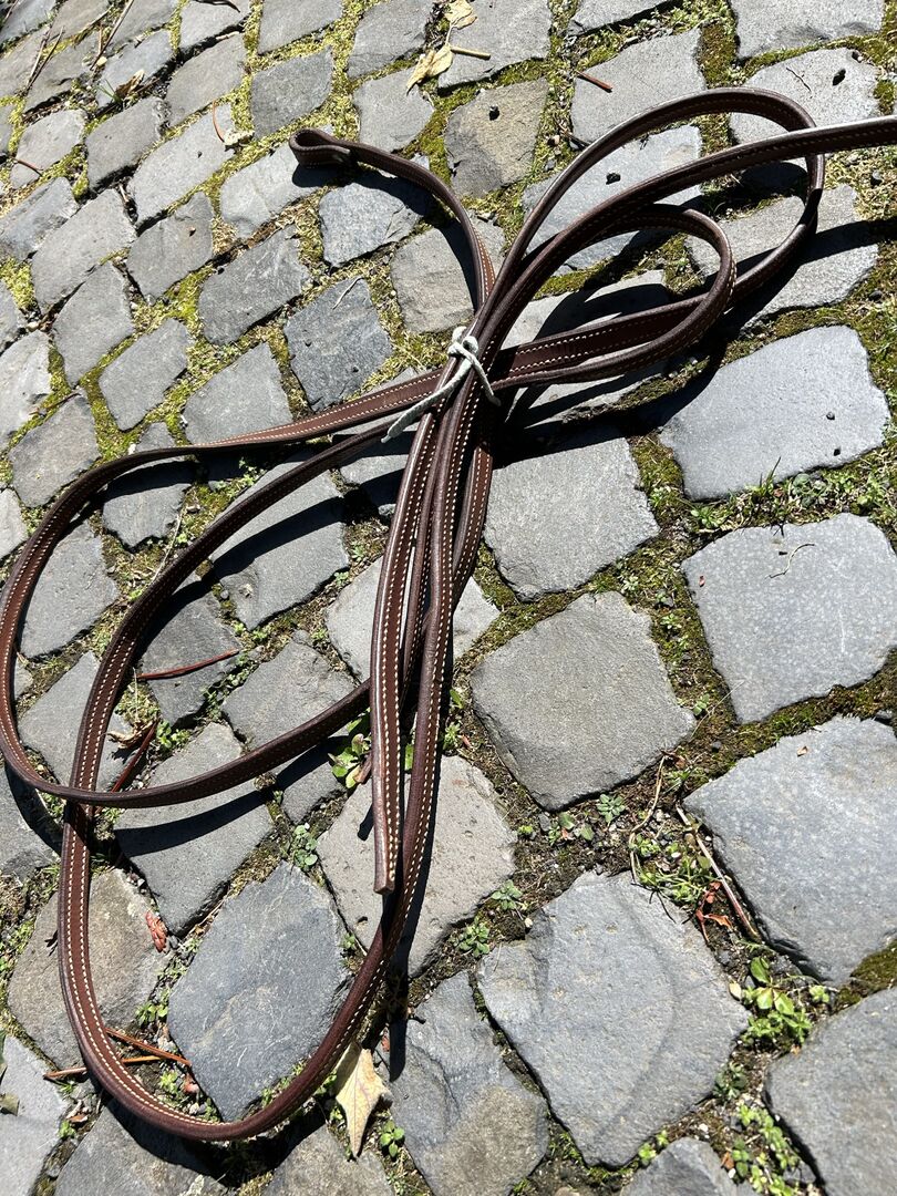 Reins leather western brown open - A few, two pieces, each 2 m long. Unused, but hang in the closet for some time. Two layers, sewn brightly. NP 40€