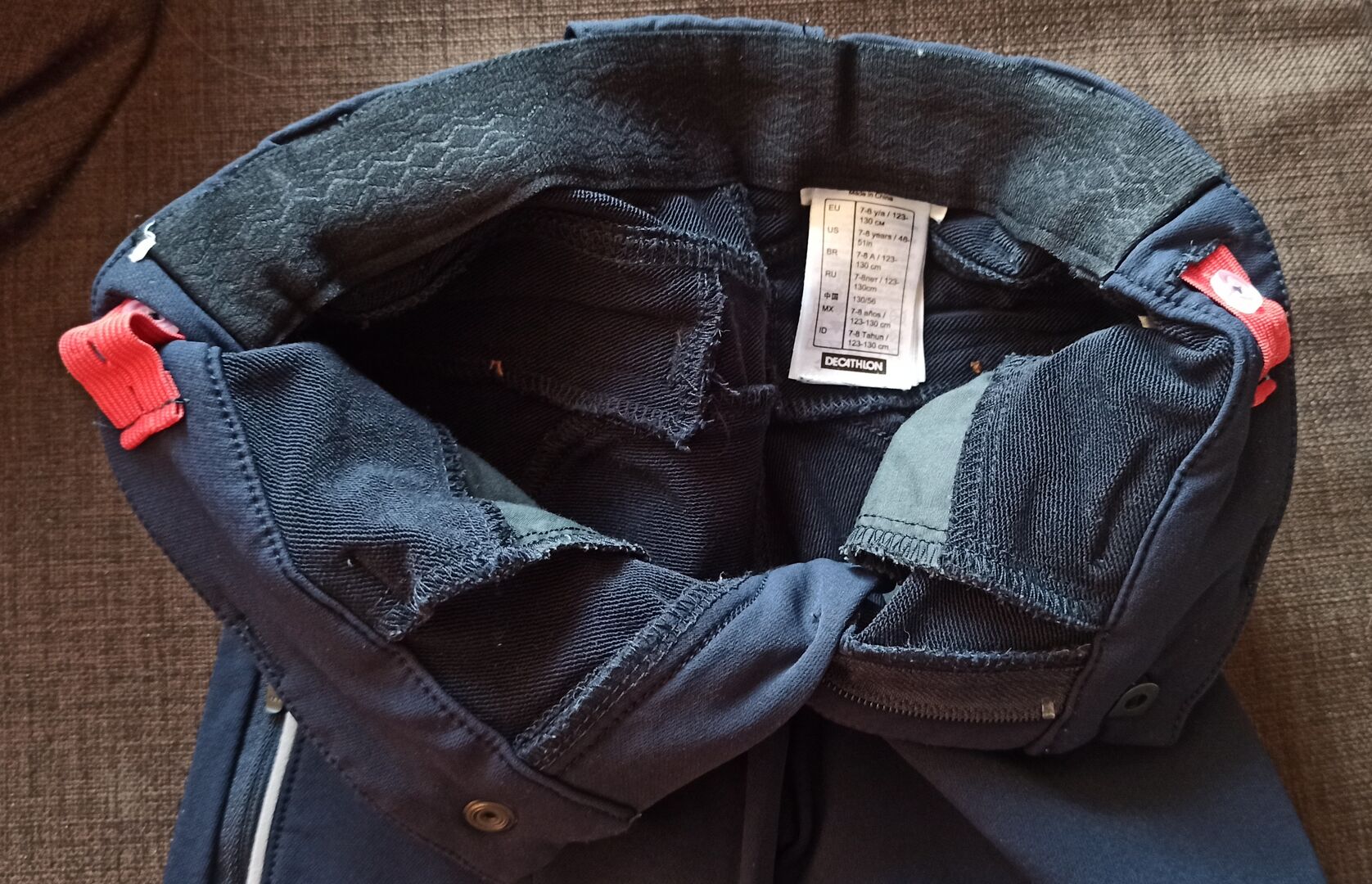 Riding breeches children NEW Fouganza 115-124 fall large - Offer a new breeches brand Fouganza in size 115-124 (but falls ehr larger) made of elastic softshell in dark blue with white applications and adjustable waistband. The knee patches are made of high quality leather and at the bottom of the fetlock with elastic rubber waistband. No peeling, no holes or other signs of use as it is new.