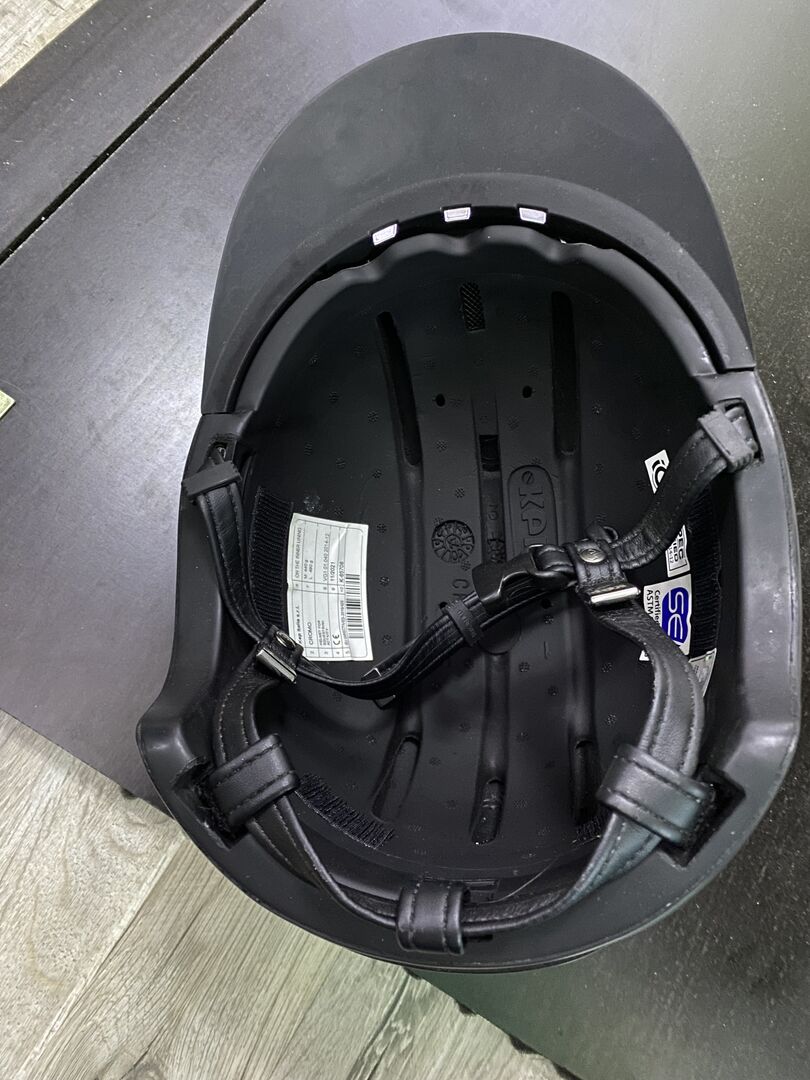 Riding helmet KEP Italia Swarovski - I am selling this riding helmet from Kep Italia, Swarovski in size M. The helmet is of course in good condition. Unfortunately 3 stones are missing (see pictures). An inlay in size 55 cm can be purchased in addition, will be washed beforehand. Shipping possible for a fee. Private sale, no guarantee or return.