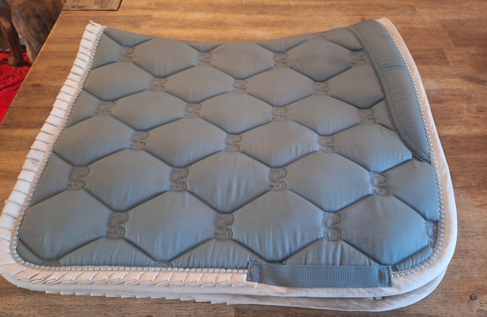 Saddle pad DR from PS of Sweden - Well preserved and little used saddle pad in full, there are only a few stains on the white which will certainly come out well. I have only washed it on a gentle cycle because of the pearls.