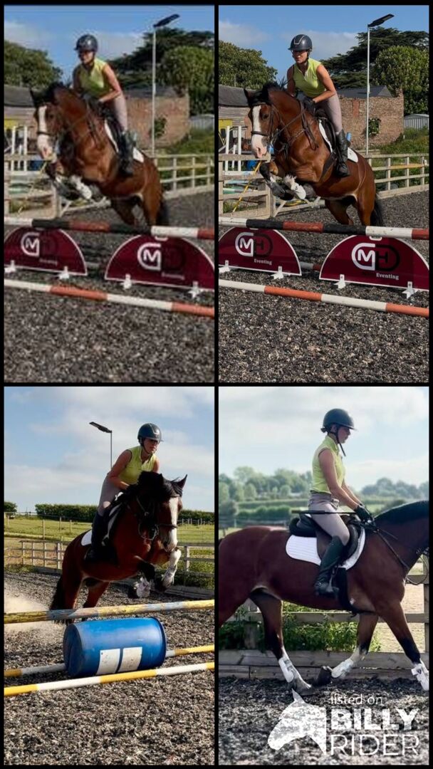 Schooling nicely and she will happily pop jumps with fillers etc.