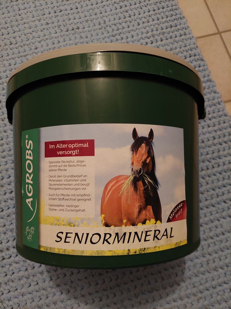 Seniormineral Agrobs - Mineral feed - Senior mineral feed from Agrobs Open, but in perfect condition (dry, cool storage) still over 8,5 kg New: 10kg for new price of 100.- (pferdefutter.de). Delivery in original bucket. Shipping after transfer of the amount + shipping costs