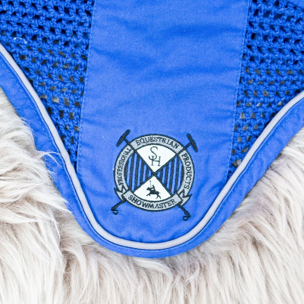 Showmaster fly ears blue COB - A beautiful and high quality fly hood from the company Showmaster. The fly ears have a beautiful large emblem on the front, which beautifully decorates the horse's head. Also we currently have two matching saddle pads and matching bandages in the store. They are in good condition and have only very slight signs of use. To the seller's offerlaunch