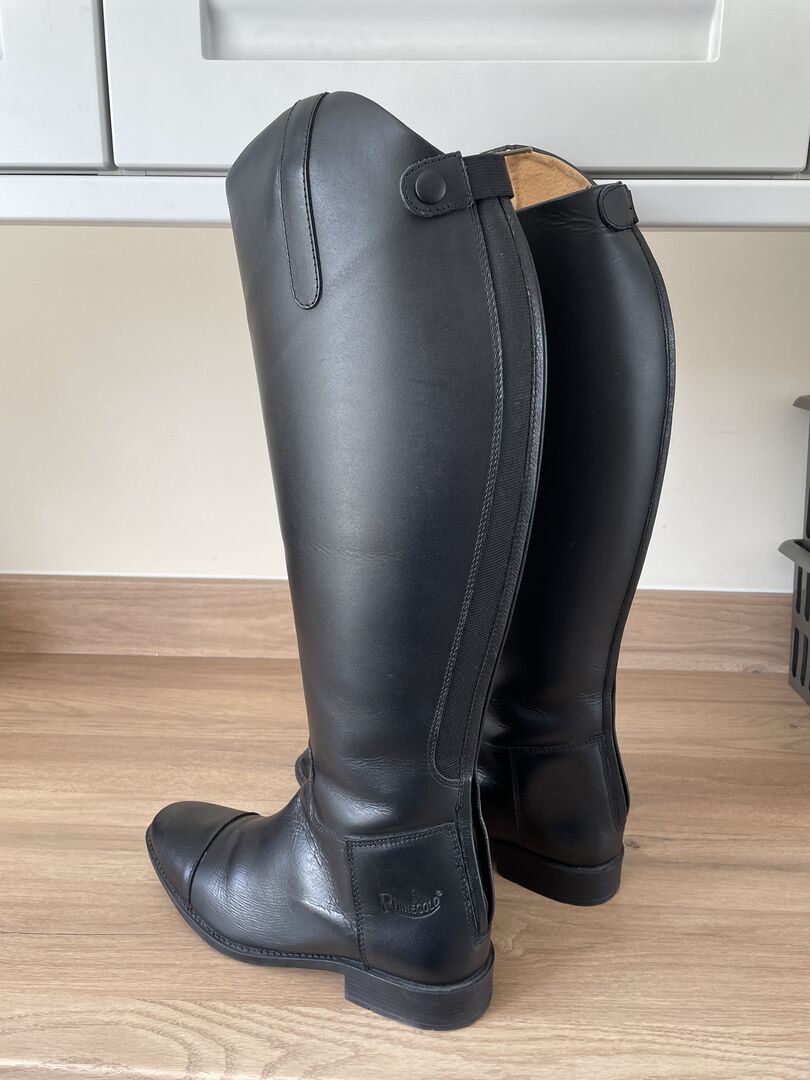 I am selling a pair of wide size 8, long black leather, zip up riding boots. Only tried on, never worn outside. Unfortunately left too long to return to shop.
