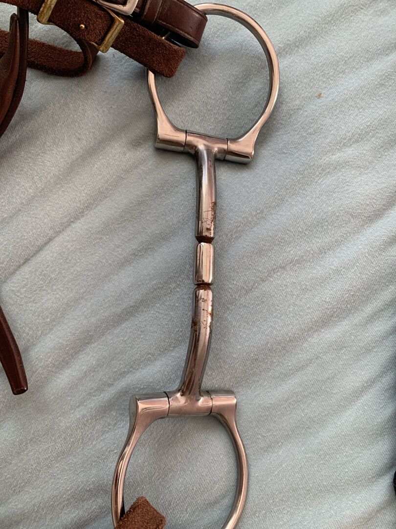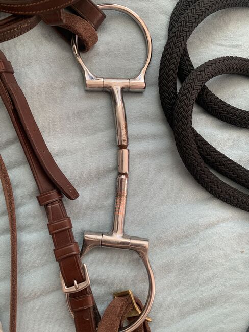 Snaffle with reins and bit - For sale here is a dark brown leather horse headstall for warmblood horses. soft leather, well cared for
