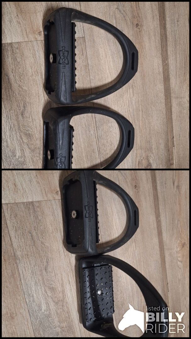 Stirrup Compositi - For sale: Compositi Flex stirrups with large, movable anti-slip tread made of hard plastic. This enables the rider to stand better and at the same time has a pleasant shock-absorbing effect, which relieves the joints and muscles.