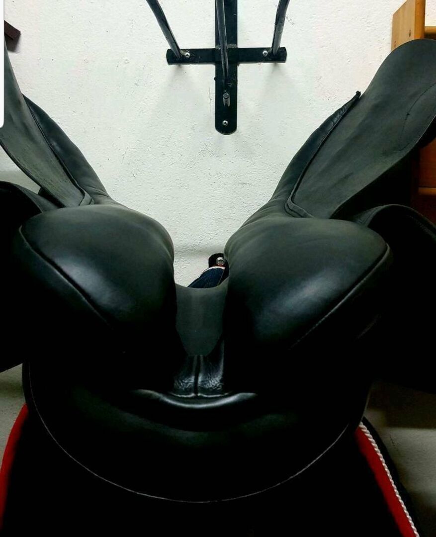 The saddle has a very short contact surface and is ideal for horses with short backs and pronounced withers. The saddle was at the previous seller only 5 times on the horse and is in almost new condition. The saddle is super comfortable and gives a very secure feeling. Super comfortable with anti drop out thimbles front and back. Soft, with adhesive non slippery leather. Simply a dream for jumping and cross country.