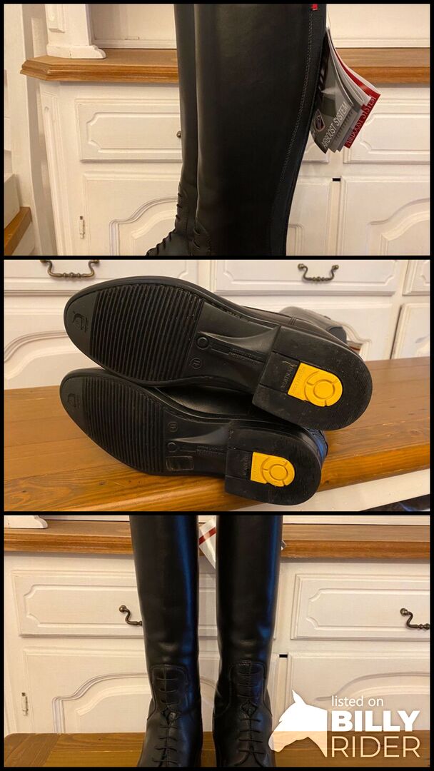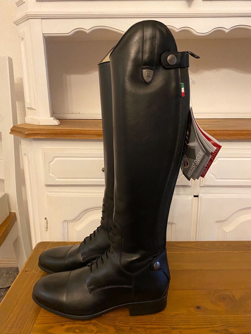 Tattini Boxer black Gr.41 XS--- NEW--- - Elegant leather riding boot from Italy made of high quality smooth soft calfskin. The back YKK zipper with elastic insert on both elastic insert on both sides ensures that the shaft adapts perfectly to your leg. The Air Boost system ensures good ventilation of the shoe. The rubber sole is shock absorbing.