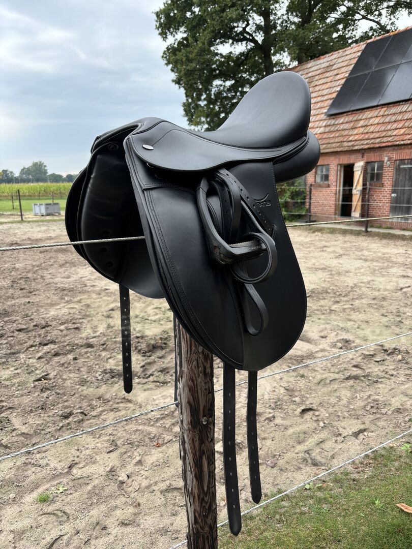 Tekna dressage saddle Maximus Smooth S-Line with accessories - The saddle was bought new last year in May, has a seat of 17.5 inches and has been used about 10 times since then. Accordingly, there are no signs of wear. The saddle has been stored dry with a cover throughout. A 2XW gullet plate is currently fitted, a 1XW is included. A Mattes Mond short girth with removable hide, black, in length 60cm could be purchased together with the saddle, the corresponding detergent is included. The stirrups can also be sold, the straps were bought new last year.