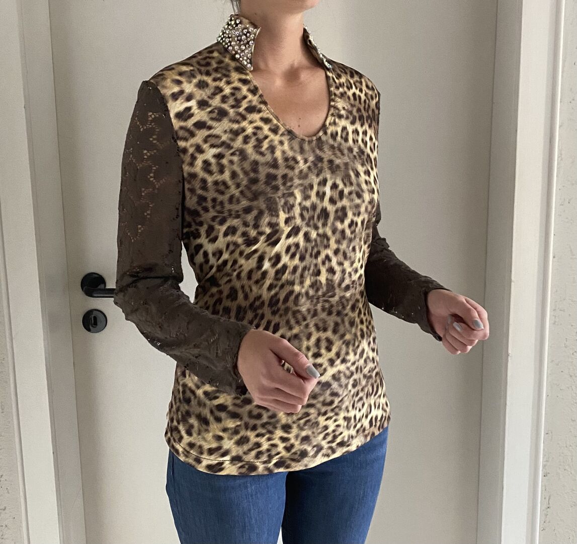 Tournament blouse (Western) - Show top in leo print and lace sleeves in brown/beige. At the collar with a lot of BlingBling :)