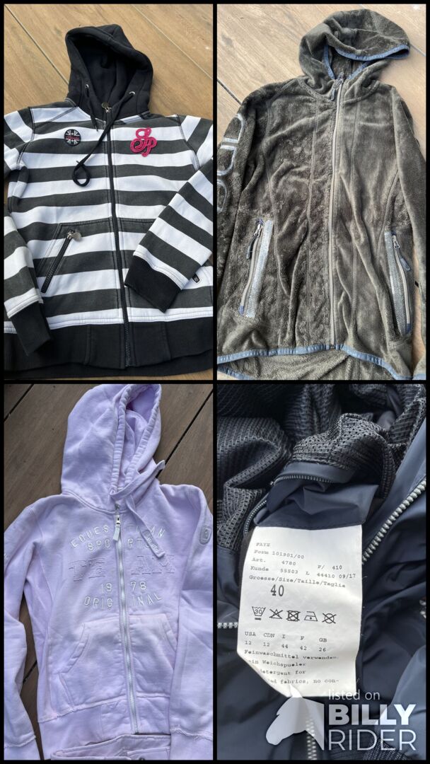 Various jackets Spooks Cavallo Pikeur - Sweatshirt jacket Spooks blue and white striped size S 10 Euro, olive green jacket Cavallo size S 15 Euro, light pink sweatshirt jacket Cavallo size S 10 Euro, nylon jacket Pikeur size 40 10 Euro